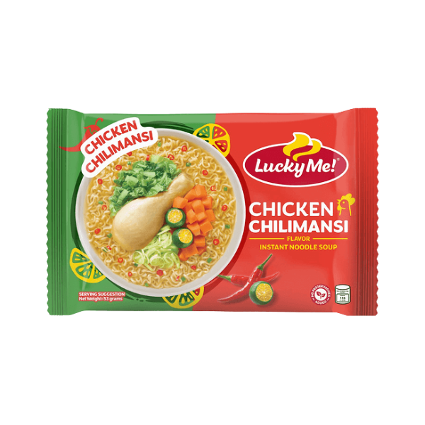 Lucky Me! Instant Mami Chicken Chilimansi (53g) is a Filipino-style instant noodle soup that combines tender chicken flavor with a zesty citrus twist. This quick and satisfying meal features chewy noodles in a savory broth, enhanced by the refreshing taste of chilimansi—a local citrus fruit. Ideal for busy days or a comforting snack, it offers a delicious balance of flavors in every bowl.